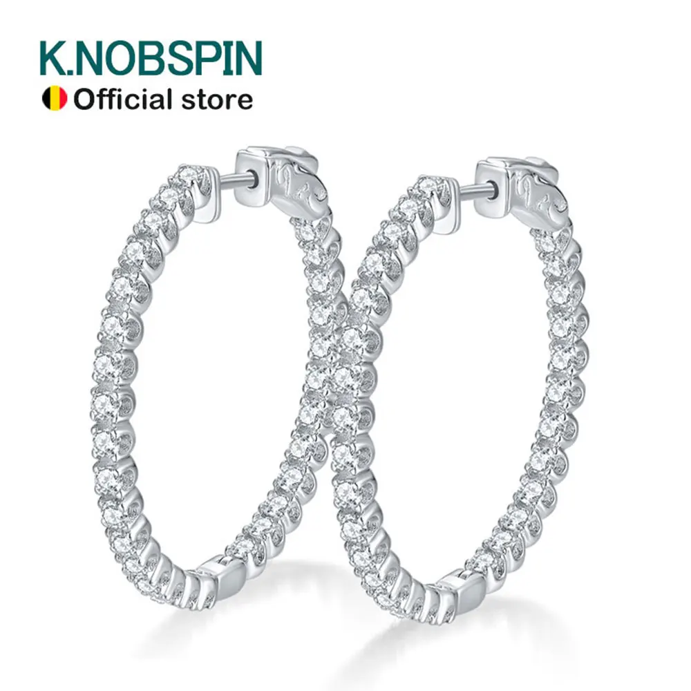 KNOBSPIN D VVS1 Pendientes de aro de moissanita para mujer, diamante brillante con GRA Original, pendiente chapado en plata de ley s925 de 18k exclusivo de timesup